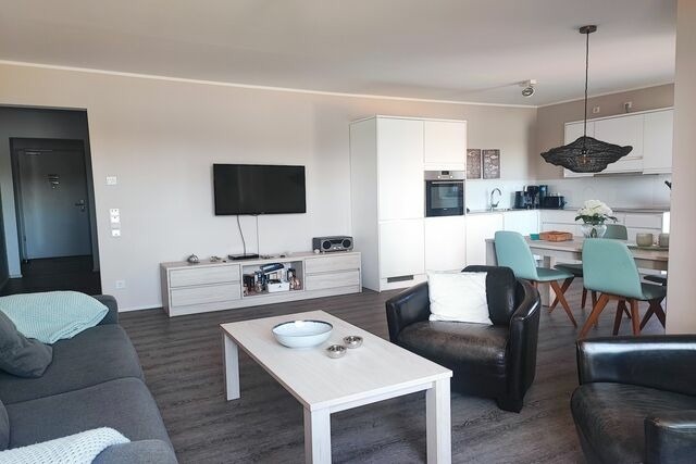 Die "Hafenspitze" liegt im Gebaude "Seglersteg", das mit weiteren Gebauden das "Quartier Hafenspitze" bildet; in exklusiver Lage direkt an der Hafenpromenade. Ein eigener PKW-Stellplatz in der hauseigenen Tiefgarage und das Erreichen Ihres Feriendomizils über einen Fahrstuhl, sorgen für ein entspanntes und barrierefreies Ankommen. Der Abstellraum für Fahrräder lädt Sie dazu ein, Eckernförde und seine Umgebung auch aktiv zu erkunden. Die Lage ist ideal für aktiven Urlaub mit schönen Ausflügen: Die Ostsee gilt als eine der beliebtesten Ferienregionen in Deutschland. Kilometerlange Strände, Steilküsten und frische Meeresluft, das alles und noch viel mehr bietet die über 700 Jahre alte Stadt Eckernförde mit ihren rund 20.000 Einwohnern. Eckernförde ist idealer Ausgangspunkt für aktiven Urlaub und schöne Ausflüge. Zu Fuß den Ortskern erkunden oder eine Wander-/Fahrradtour starten, alles beginnt direkt vor Ihrer Haustür. Der historische Altstadtkern ist wenige Meter entfernt mit Cafés, Bäckereien, Biomarkt, Restaurants, Eisdielen, Bonbonkocherei, Apotheken, Boutiquen etc. Rauschende Wellen, die facettenreichen Schreie der Möwen, saubere, kühle Ostseeluft. Eingerahmt in den 4km langen Stadtstrand. Auch der mit vielen Blumen wunderschön bepflanzte Kurpark ist immer einen Besuch wert. Das Meerwasser-Wellenbad lädt zum Schwimmen und Entspannen ein. Viele Möglichkeiten bieten nahegelegene malerische Städte wie Kappeln und Arnis an der Schlei, die Domstadt Schleswig mit der alten Fischersiedlung Holm und die Landeshauptstadt Kiel. Nicht nur die Ostseeküste, sondern auch die Hüttener Berge und das Windebyer Noor bieten sich für schöne Ausflüge an. Des Weiteren ist die interessante Stadt Flensburg nur 60km entfernt, die nördlichste Stadt Deutschlands an der dänischen Grenze. Ein toller Tagesausflug führt in die Weltstadt Hamburg 120 km entfernt. Maritime Nostalgie trifft auf Moderne, wenn zum Beispiel wie jeden 1. Sonntag im Monat der Eckernförder-Fischmarkt veranstaltet wird, wo Jung und Alt auf allerlei Waren zum Stöbern und Kosten eingeladen werden. Alteingesessene Events, wie die Eckernförder Sprottentage (Juni), die Borbyer-Gilde (Juni) und die Aalregatta (Juni), geben Ihnen Möglichkeit, uns näher zu kommen und auf einen Schnack sitzen zu bleiben. Schreien Sie sich beim Strand Open Air am Südstrand (August) die Seele aus dem Leib und tauchen mit Ihrer Familie und Freunden beim Piratenspektakel ab (August) in eine Welt voller Rum und Rabauken. Kurz vorm Jahresende nochmal ein Perspektivwechsel auf dem Green Screen Naturfilm Festival (September), und abschließend können Sie ein weiteres Eckernförder Jahr auf dem Weihnachtsmarkt (November-Dezember) hinter sich lassen.
